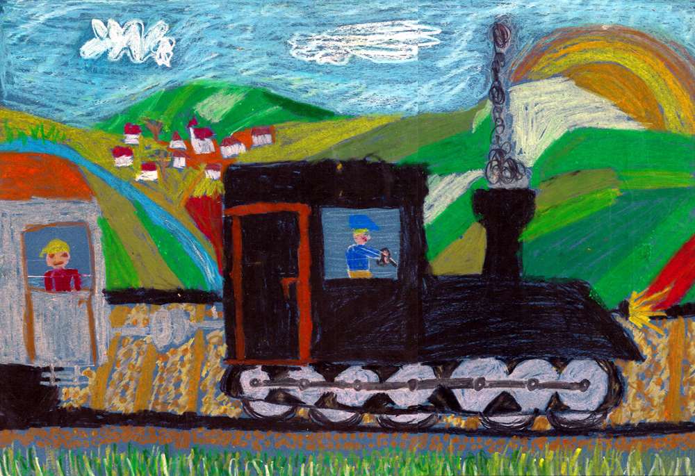 Illusztráció Petőfi Sándor Vasúton című művéhez. Fábián Nóra rajza